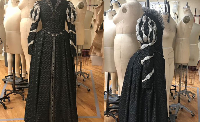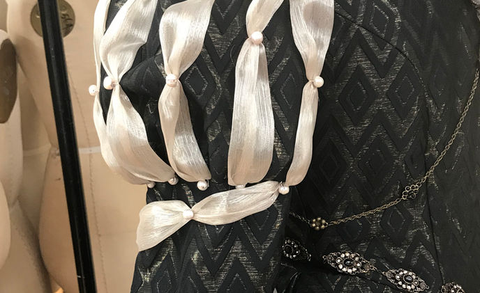 Build for "Rivera", 3 pleated skirt layers, boned bodice, chain and and pearl details